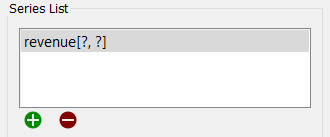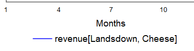 When working with objects that take variables, including graphs, tables, and numeric displays on the model and most control and output objects on the interface, you will have the option to use a ? for an array position. For example, if you were adding revenue to the graph you would get: