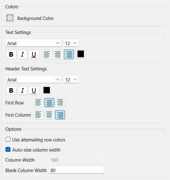 User alternating row colors, if checked, will alternate the rows between shaded and not in order to increase the horizontal distinction between them.
