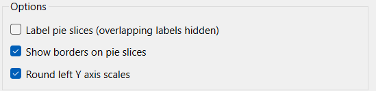 The pie chart has an additional option to label the pie slices and to remove borders between the slices.