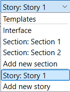 - Add new section is an action. It will open a small dialog allowing you to enter a name for the section, and then the Design Selection Dialog to add the first page to the section. The name you choose must be unique among sections and stories and can't be Interface or Templates.