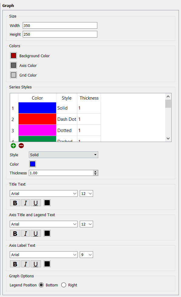 - Axis Title and Legend Text - choose the font, font size, attributes, and color for axis title and legend text.