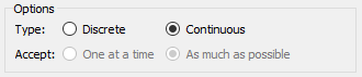 Type – Use this option to select how the initial value is calculated for the conveyor: Continuous or Discrete.