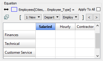 In the "Equation" section of the Equation panel, use the Apply to All check box to specify whether you're defining one initial value/equation for all elements, or if you're defining a separate initial value/equation for each element: