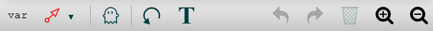 The CLD editor has an extremely simple toolbar. You can add a variable (they will display as name only delay converters so that you can make loops) and you can connect variables. The ghost tool (availability depends on configuration) can be used to make ghosts, the Loop Labels (Model) to add labels identifying feedback loops, the Text boxes tool to add text then undo, redo and delete (which deletes anything selected). Use the two zoom tools to zoom in and out of the model diagram.