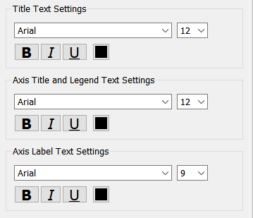 This is for the legends as well as the x and y axis descriptions. The numbers displayed along the x and y axis are set with the Axis Label Text Settings.