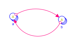 You would receive an error message that a[1] and b[1] are involved in a circularity. The same would be true of a[2] and b[2] but only the first detection is reported.