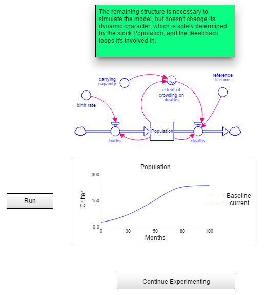 We'll start with a simple population model, with growth limited by carrying capacity. This model will let us demonstrate some of the basic principles of stocks and flows, and the importance of feedback in determining behavior.