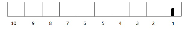 Here the numbers represent DTs until the material is released from the conveyor. If the transit time were shorter the lump would have been placed to the right, longer to the left. Once it is placed, transit time has no effect on it. With no leakage, the next DT the state of the conveyor would be: