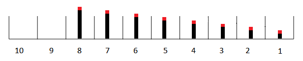 There are two types of leakage: linear and exponential. With linear leakage, the same amount is taken away every DT. For example, if the leak fraction was 8% (0.08) then 1% of the material would be taken out during each of the 8 DTs the material was in the conveyor. Thus a time lapsed picture of our material over the 8 DTs would look like:
