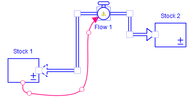 - Flows – A flows fills or drains stocks. An arrowhead on the flow pipe indicates the direction of the flow. The flow's equation acts as a valve, controlling the rate of flow.