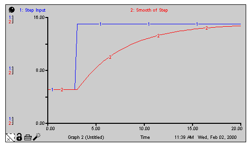 Note: The dynamic behavior of SMTH1 is identical to DELAY1, except when the averaging time changes. SMTH1 is conceptually a stock and DELAY1 is conceptually a flow.