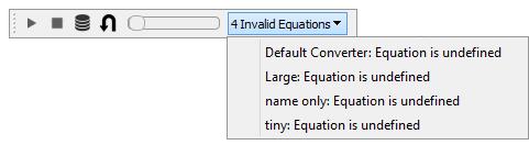 Once all the equations are valid, the model will automatically be checked for dimensional consistency. Any issues with units will appear in the Run toolbar; choose an error to get directed to its context. When you've resolved all the issues, the validity indicators will disappear.