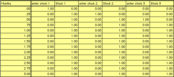 The inflow to "Stock 1", "enter stock 1", is defined with the PULSE Builtin function. The PULSE fires off a 1.0 at TIME = 0. Once the 1.0 arrives in "Stock 1", this becomes a signal to fire a 1.0 into "Stock 2". Once "Stock 2" is "loaded," it triggers a 1.0 to flow through "enter stock 3". We'll simulate this system twice, once with DT = 0.25 and once with DT = 1.0. When we do, we get the results shown in the following tables.
