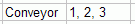 To import values from a file into a conveyor or queue, enter all values for the conveyor or queue as a comma-separated list in a single cell of the import file. For conveyors, you specify one value per unit time in the conveyor. For queues, you specify one value per element in the queue.