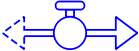 Biflow. A flow that moves material in the direction of the solid arrow, but that can also take on negative values effectively taking away material from the downstream stock. The dashed arrowhead indicates that material will be taken away, when the flow value is positive.