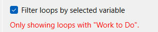 Filter loops by selected variable, if checked, will only show loops that involve the currently selected variable. If no variables are selected, or more than one variable is selected, all loops will be shown. When the set of loops shown is restricted there will be a line showing the restriction: